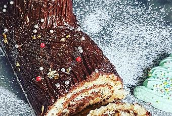 Coupe une petite "tranche" et place sur le dessus de la bûche pour un effet "rondin de bois".