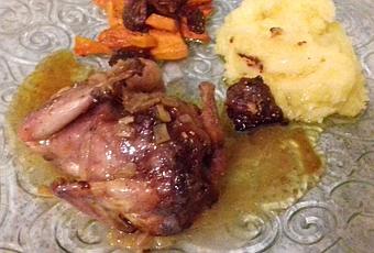 J'ai agrémenté les cailles farcies au foie gras et aux figues avec un écrasée de pommes de terre au beurre et des carottes glacées aux figues.