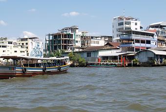 Mais à Bangkok, il y a aussi la version un peu plus grande du cours d'eau: la rivière Chao Phraya. Imaginez un mélange entre la Seine et le Canal Saint Marc, mais version thaïlandaise.Alors tout pareil que sur les Klongs, on prend le bateau bus pour se balader. Ça remue !!!