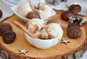 Une délicieuse glace pour les amateurs de crème de marrons ! Crème de marron et marrons glacés, on ne peut pas faire plus gourmand !