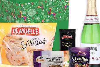 Suite à un accord entre les chaînes de grande distribution et le ministère de la production au niveau national, depuis hier, les supermarchés proposent à leurs clients, pour la somme très réduite de 199 $ ARG, une sélection de six produits traditionnels de Noël à offrir à ceux qu'on aime : du turrón (en l’occurrence d’arachide), des pralines (en l’occurrence d’arachide), du cidre (visiblement remplaçable par n’importe quelle boisson pétillante à base de n’importe quel fruit, comme sur cette photo où l’on voit un pétillant d’ananas), du pan dulce (sur la photo illustrant l’article de Página/12, on constate qu’il s’agit d’un tout petit modèle, façon panettone individuel), un gâteau de type quatre-quart ( appelé budín en Argentine) et enfin des bonbons.