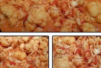 4- Couper le tofu en cube et l'ajouter (je n'en ai pas mis). Lorsqu'il est cuit ajouter le chou-fleur égoutté.