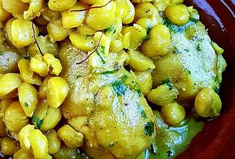 Voici un bon tajine de poulet aux pois chiches tout simple et très goûteux !!