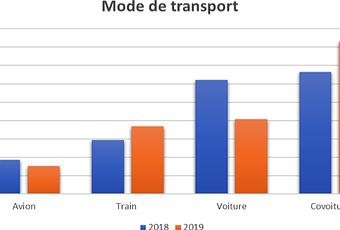 Le poste le plus impactant, c'est évidemment les transports, et s'il est vrai que Pau est un écrin idéal pour accueillir nos rencontres, le "on" comme le "off", on ne se simplifie la tâche de ce point de vue, peu d'entre vous privilégiant le train à la voiture ou l'avion. Votre sensibilisation personnelle et celle que l'on a essayé de mettre en oeuvre à travers nos communications, ou encore l'utilisation de la plate-forme de co-voiturage Togetzer ont néanmoins eu un impact significatif entre les deux éditions comme en témoigne ce graphique. Il n'en reste pas moins vrai qu'avec un impact représentant 68% du bilan global, c'est clairement à ce niveau là que chacun d'entre nous peut agir individuellement, et que nous tâcherons de vous simplifier la tâche pour mieux organiser vos déplacements.