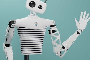 Aujourd'hui, c'est un petit robot qui a fait l'actualité du salon. Un robot 100% français, cela ne va pas sans dire. Son nom ? Reachy. Sans fonction particulière si ce n'est aider l'Homme dans toutes ses tâches, Reachy est doté de deux jolis yeux ronds, avec des caméras HD intégrés, de petites antennes animées et surtout d'un sous-pull marinière.