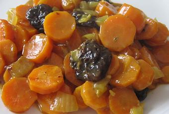 mettre les carottes,l'oignon , les pruneaux,le thym et le laurier dans la cocotte de base