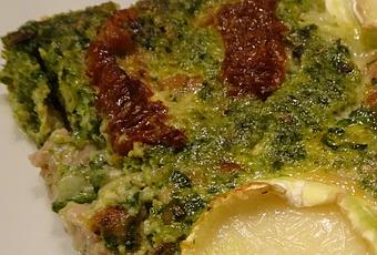 Placez les lanières de tomate par alternance avec le fromage et enfournez pour 30 min ou jusqu'à ce que la préparation soit bien prise.