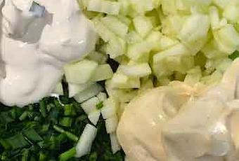 - Dans un saladier, réunir céleri, ciboulette, pomme, mayonnaise et crème épaisse. Assaisonner.