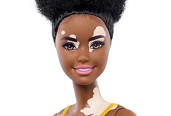 Mattel a révélé une poupée avec du vitiligo, une poupée sans cheveux et une poupée avec un teint plus foncé. Selon Mattel, le fabricant de poupées Barbie, la ligne Barbie Fashionistas comprend désormais 176 poupées avec 8 types de corps, 35 tons de peau et 94 coiffures. Elles sont " conçues pour refléter le monde que les filles voient aujourd'hui ".