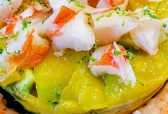 - Épluchez les avocats , retirez les noyaux, coupez la chair en fines lamelles.