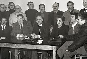 Debout, de gauche à droite : MM. Souvrain, André Auvray, MM. Lesoive, Mozziconacci…et le dernier, M. Michel Cambour. Je suis preneur des trois noms qui me manquent, celui de la dame du premier rang et celui des personnes situées entre M. Pierre Mozziconacci et Michel Cambour.