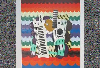 C’est bien spécifique à Farah Atassi, ces fonds décoratifs géométriques tels des papiers peints des années 60, ces rayures et festons qui semblent découpés-collés. C’est bien à elle, ces personnages déstructurés à la Picasso (on retrouve même la femme picassienne dans un rocking-chair!). C’est bien à elle cette façon de confondre objets et formes humaines.