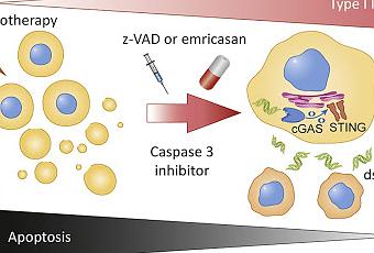 De récentes investigations (Rodriguez-Ruiz et al.)* ont émis l’idée contrintuitive selon laquelle l’action de retarder l’apoptose après irradiation tumorale à l’aide de la caspase 3 chez les tumeurs élève l’immunogénécité des cellules malignes mourantes. Ignacio Melero, et al, dans Trends in Cancer, publication en ligne en avant-première, 27 janvier 2020