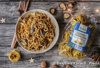 Recette bio : Tagliatelles bio curcuma et pavot Priméal, aux shiitake et aux noix