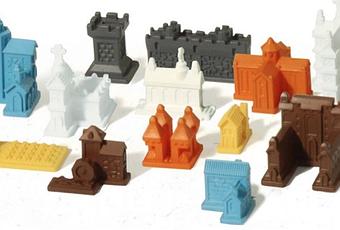 Formez une réserve par type de Bâtiments et par longueur de Murs ainsi que par couleur de dés. A 2 joueurs/joueuses remettez 1 Bâtiment de chaque type et 1 dé de chaque couleur dans la boîte. En fonction du nombre de joueurs/joueuses posez un certain nombre de jeton Temps face blanche visible : à 4 joueurs/joueuses prenez 5 jetons Temps et 3 à 2/3 joueurs/joueuses.