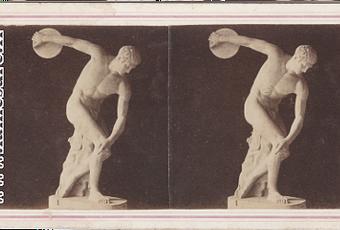 Illustrations ci-dessus : Photographie stéréoscopique d'une statue romaine, reproduisant le fameux Discobole de Myron.