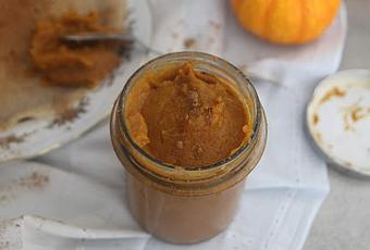 Verser le beurre de courge dans un pot en verre pour la conservation.