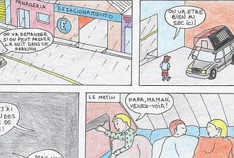 Vers 8h, tout le monde est réveillé! Nous descendons du 4×4, et là, nous voyons un duvet par terre à 10m de la voiture! C'est un SDF qui dort là et qui s'est fait sa popote pendant la nuit! Nous prenons vite notre petit-déjeuner debout, pas très à l'aise. Nous lui laissons notre reste de pain, décidés à ne pas revenir le soir...