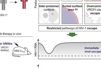 Les anticorps neutralisants à large spectre (bNAbs) représentent une approche prometteuse de prévention et de traitement de l’infection par le VIH-1. Cependant, l’échappement viral par mutation de l’enveloppe glycoprotéique (Env) du VIH-1 en limite les applications cliniques. Ici, nous décrivons 1-18, un nouveau site de liaison CD4 (CD4bs) bNAb à spectre exceptionnel (97%) et puissance exceptionnelle (GeoMean IC50=0.048 μg/mL). Il est à noter que 1-18 est insensible aux mutations typiques d’échappement et, de fait, surmonte la résistance du VIH-1 aux autres CD4bs bNAbs. De plus, un profilage mutationnel des antigènes a dévoilé les voies restreintes d’échappement du VIH-1. Élément de ce fait des plus prometteurs sur le plan thérapeutique, 1-18 parvient à supprimer la virémie du VIH-1, même seul, chez les souris humanisées infectées par le VIH-1, sans sélection des variants de résistance virale. Une structure de 2.5 Å identifiable par cryo-microscopie électronique d’un complexe Env 1-18-BG505SOSIP.664a révélé que ces facultés sont vraisemblablement facilitées par une insertion d’une chaîne lourde et qu’elles augmentent les contacts inter-promoteurs. La capacité de 1-18 à restreindre effectivement les voies d’échappement du VIH-1 fournit une option nouvelle de prévention des infections par le VIH-1. Philipp Schommers, et al, dans Cell, publication en ligne en avant-première, 30 janvier 2020