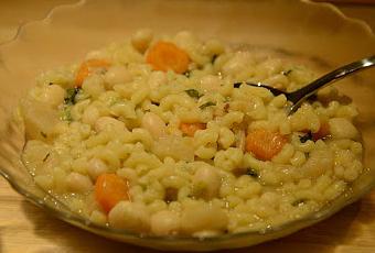 L'ensemble a mijoté une bonne quinzaine de minutes jusqu'à ébullition. J'ai ajouté ensuite 250 g de coquillettes. 10 mn de cuisson et l'ensemble était bien cuit.