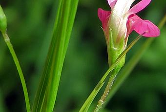Lathyrus nissolia (Gesse de Nissole) : feuilles sans folioles et sans vrille, réduites à un pétiole aplati et allongé (phyllode) ; fleurs purpurines solitaires ou par 2. Pelouses, prairies sèches, fruticées sur pelouse, haies, lisières forestières