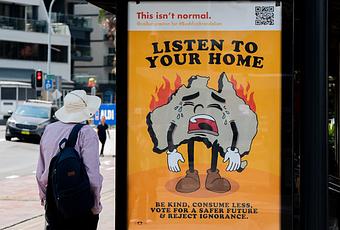 Afin d'attirer l'attention sur la crise climatique en cours et le nombre sans précédent de feux de brousse à travers l'Australie, 41 artistes ont transformé les rues de Melbourne, Sydney et Brisbane en la plus grande campagne non autorisée du pays. Ils prônent ainsi une action immédiate. La semaine dernière, les artistes de Bushfire Brandalism ont remplacé 78 affiches dans les trois villes par des designs originaux. Ils axent leurs affiches sur l'industrie des combustibles fossiles, les pompiers héroïques locaux et la dévastation de la faune et des habitats naturels à travers le pays.