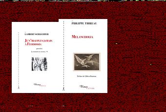 Cependant, on pourra m’opposer : mélancolie : un miroir-sorcière ? de l’autre côté du miroir ? Engloutissement en miroir des deux monologues ? À vous de voir…Peut-être Philippe Thireau a-t-il voulu éviter que son écrit prenne le caractère d’une épopée victorieuse. Peut-être a-t-il souhaité que cet écrit lui ressemble davantage et soit son « portrait tout craché » (Gilbert Bourson apporte au livret une préface très claire). Et l’auteur suggère plusieurs « niveaux de lecture » de son texte. Entre autres, celui d’un théâtre : de marionnettes (elles font, font, font) et celui d’un cinéma (clic, clac). Mais…histoire de « la fille violette et le soldat », il y a aussi une pointe de souvenir de Claudel dans Melancholia.