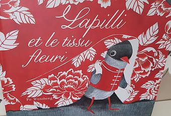 Fu Wenzheng est une jeune artiste chinoise dont le style graphique s'inspire de la culture et de la tradition de ses origines. Dans Lapilli et le tissu fleuri, elle nous livre un graphisme épuré, sobre, élégant et poétique avec un tissu de style asiatique aux motifs naturels et ornementaux. Cet album est très classique dans son texte puisqu'il met en évidence un conte randonnée connu dans la littérature de jeunesse animalière (récit dans le même genre de Mr Bout de Bois, Pile poil ou même Le sapin de Monsieur Jacobi).