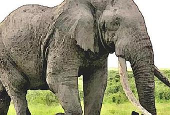 Aujourd'hui, les éléphants, qui sont du même ordre que les deux précédents animaux préhistoriques cités, à savoir des proboscidiens, sont nettement moins impressionnants comme grosses bestioles. Ainsi, au lieu de deux paires de défenses, ils n'en ont plus qu'une seule, et encore, leurs défenses sont de plus en plus petites au fil des siècles. Est-ce d'ailleurs une coïncidence ? Le commerce de l'ivoire, le trafic des défenses d'éléphant, a une incidence certaine sur "l'évolution" de cette espèce, faisant que seuls, les individus ayant des défenses petites pourraient survivre car seraient moins recherchés (et tués) par les trafiquants : ou comment l'humain intervient dans un processus de la Nature mis en valeur par Darwin...