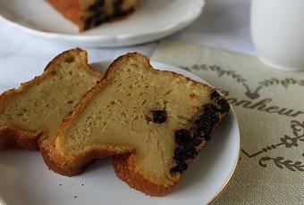 -1 boite de 400 g de lait concentré non sucré -4 oeuf -100 g de cassonade -50 g de beurre + pour le moule -120 g de farine + pour le moule -50 g de poudre d'amande -1 sachet de sucre vanillé -1/2 sachet de levure chimique -1 pincée de sel -4 cs de cassis déshydratésPréchauffer le four à 180°.