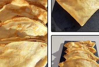 6- Cuire les crêpes sur une crêpière bien chaude préalablement huilée. Bien huilée entre chaque crêpe.