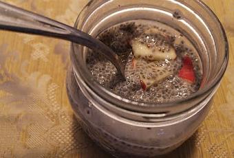 - 3c. a soupe de chia- 150 ml de lait végétal ( j'aime bien lait amande et coco sans sucre)- 2c.à thé de sirop d'érable- 1/2 c. à thé de vanille *facultatif des fruits votre choix frais ou congelé