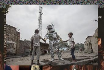 Un cosmonaute avance dans la rue. Il s’appelle Kongo Astronaut et semble sortir du décor lui-même surréaliste de Kinshasa. Sa tenue est faite d’éléments informatiques récupérés et symbolise le pillage des matières premières de la RDC par les multinationales. Sans argent, Béni Barras squatte un bâtiment en chantier sur le campus de l’académie des beaux-arts. Il brûle du plastique pour le lier à des objets récupérés et en faire des œuvres d’art. Pour survivre. Autrefois enfant exorcisée, Géraldine Tobe peint avec la suie des bougies ou la fumée des lampes à pétrole de grandes formes expressives. Yas Ilunga organise dans la rue des performances avec son groupe, les Majestikos, par exemple d’évoluer dans une baignoire couvert du sang coulant d’un réservoir pour dénoncer les massacres dans l’Est du pays et les guerres fratricides alimentées par les intérêts étrangers. Comme le diable incarné par la danse de Strombo Kayumba, « innocent comparé aux vrais démons qui dirigent ce pays », ils cherchent à conjurer l’emprise des églises évangéliques. La ville manque d’eau et d’électricité alors qu’elle borde le plus grand fleuve du monde : Flory et Junior dénoncent l’incurie des autorités responsables en évoluant déguisés dans la rue. Quant aux musiciens du groupe Kokoko !, ils ont confectionné eux-mêmes des instruments en recyclant de l’électroménager et de l’électronique. Ils soutiennent les autres artistes durant leurs performances.