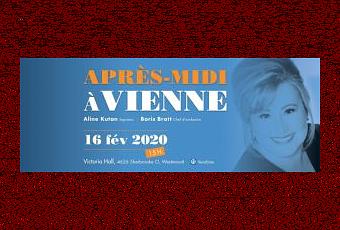 Sous le thème « Un après-midi à Vienne », l’Orchestre classique de Montréal (OCM) et son chef Boris Brott recevront le dimanche 16 février 2020 la soprano Aline Kutan. Notre Reine québécoise de la nuit, comme je l’avais présenté dans l’Entretien publié dans le numéro (Hiver 2000) de L’Opéra- Revue québécoise d’art lyrique que vous pouvez consulter ici, interprétera des œuvres de Berg, Lehàr, Mozart, Schoenberg, Strauss, Webern. Ce concert débutera à 15 h et se déroulera au Victoria Hall de Westmount situé au 4626, rue Sherbrooke Ouest à Westmount… mais au comble du malheur pour ceux et celles qui voudraient y assister, il affiche complet !