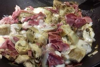 Artichaut à l'espagnole au jambon serrano et au fromage de brebis: Alcachofa española con jamón serrano