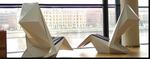 Les formes acérées et les arêtes vives inhérentes à l'univers de l'origami combinent aspect structuré et légèreté. Des formes qui donnent un effet de mouvance vers l'arrière, incitant à s'allonger en leur sein. Car d'agressives à leurs pointes à la base du fauteuil, elles se métamorphosent en une coque volumineuse et protectrice. Une coque qui doit aussi offrir un excellant maintient latéral tout permettant de s'isoler pour la sieste...