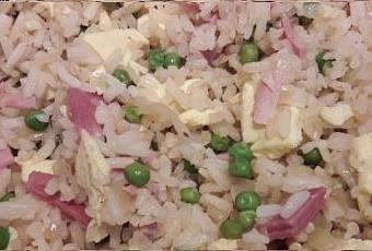 - A la fin de la cuisson, découpez l'omelette en petits dés. Mélanger le riz, les petits pois, dès de jambon et omelette.
