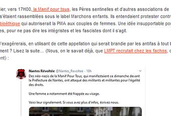 Bon, cette fois, je vous la fais courte car je reviens juste du boulot et je n’ai pas trop le temps de bloguer ce soir, à mon grand regret… En gros, on a retrouvé l’agresseur d’une militante LGBTQ en marge d’un rassemblement de LMPT en décembre 2019, dont j’avais parlé ici :