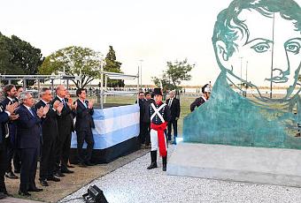 Jeudi dernier, pour l’anniversaire du drapeau argentin, le président Alberto Fernández s’est rendu à Rosario, lieu de création du drapeau, pour inaugurer un nouveau monument à Manuel Belgrano : une sculpture de métal inspirée du portrait du général par le peintre français Casimir Carbonnier (Londres, 1815).