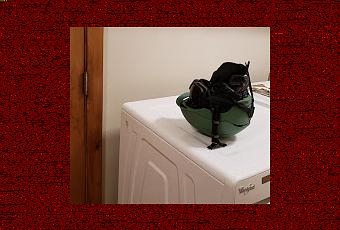 J'ai ensuite courageusement forcé le casque de plus petite taille sur ma grosse tête, l'ai remis en place rapidement pour déplier une de mes oreilles qui était complètement écrasée, vérifié si le masque fonctionnait avant de forcer mes énormes mains dans les moufles minuscules de mon épouse.