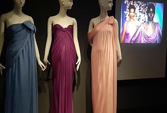 L’exposition met en scène différentes silhouettes avec en parallèle des croquis originaux, des échantillons de textiles, des photos d’époque… On découvre ainsi tout le processus créatif du couturier depuis l’esquisse du vêtement jusqu’au choix des tissus et le coût final de la tenue.