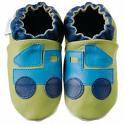 Cependant, ce n'est pas toujours évident de laisser nos bb nus pieds : sols sales, froid, sol dangereux .....Il existe les chaussons au cuir souple. Ils sont très fins, souples, laissent la plante du pied bien s'étaler sur le sol, les orteils ne sont pas comprimés... Les mouvements du pied ne sont pas entravés. Ce sont des protections contre un environnement agessif. Sensations "pieds nus" mais protégés !