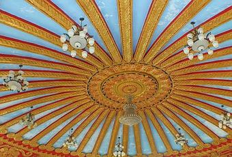 Magnifique mausolée en forme de lotus au milieu d'un plan d'eau.