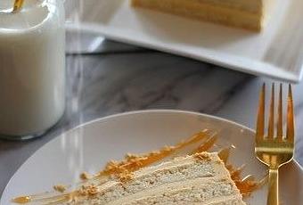 9)Garnir chaque étage avec 125 ml (1/2 tasse) de crème au beurre, en superposant les étages. Glacer entièrement le gâteau avec le reste de la crème au beurre. On peut décorer de flocons d'érable au dernier moment.