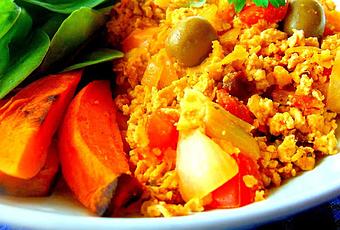 - un bloc de tofu râpé ( du haché végétal ou des protéines de soya texturées feraient tout aussi bien l'affaire)