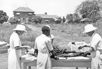 Débridement d'un ulcère de Buruli à l'hôpital de Quessua, Angola (1956)