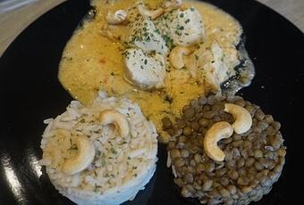 Ajouter le poulet, la coriandre, le lait de coco et le yaourt.