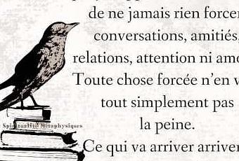 La leçon la plus importante que j'ai apprise cette année est de ne jamais rien forcer : conversations, amitiés, relations, attention ni amour. Toute chose forcée n'en vaut tout simplement pas la peine. Ce qui va arriver arrivera. Ce qui va bloquer bloquera. Ce qui est sera.