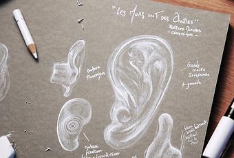 « Ces oreilles font la paire, sur vos murs elles sauront se faire discrètes, se fondre dans le décor à l’écoute de vos secrets; plus elles seront nombreuses, mieux ils seront gardés »