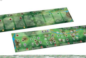 Après avoir assemblé les 2 parties du plateau principal, mélangez les cartes Villageois et placez le paquet face cachée à gauche du plateau puis révélez 5 cartes que vous placez face visible à gauche au dessus du plateau. Mélangez les cartes Rempart et placez-les face cachée au-dessus du plateau vers le centre.